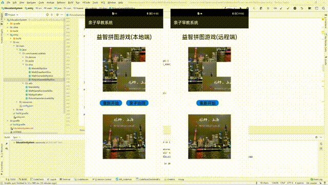 ▲益智拼图游戏:左右两台手机可以协同拼图