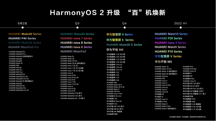 当然HarmonyOS并不是只有新机独有的,华为将陆续向华为手机、平板、智慧屏等智能终端设备推送升级HarmonyOS 2,到明年上半年计划实现近百款设备升级HarmonyOS 2,让更多消费者可以体验到HarmonyOS便捷、流畅、安全的全场景交互。
