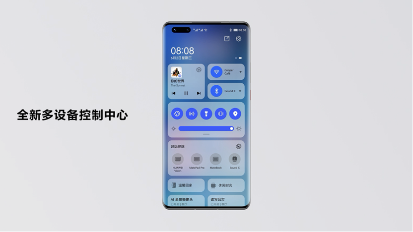 HarmonyOS创新的多设备交互,让消费者操控多个设备像操作一台设备一样简单。全新的多设备控制中心,创造了简约直观的连接方式,手机、平板、电脑、音箱、耳机一拉即合,让用户在控制多设备时,也如同控制单设备一样简单。