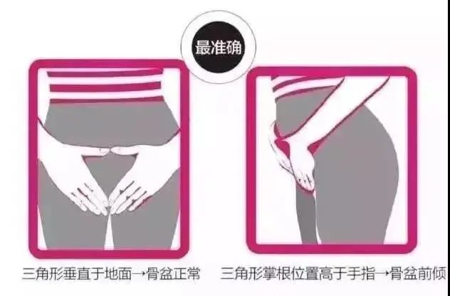 三角形垂直于地面,则正常,掌根要是在手指的前面,则骨盆前倾。