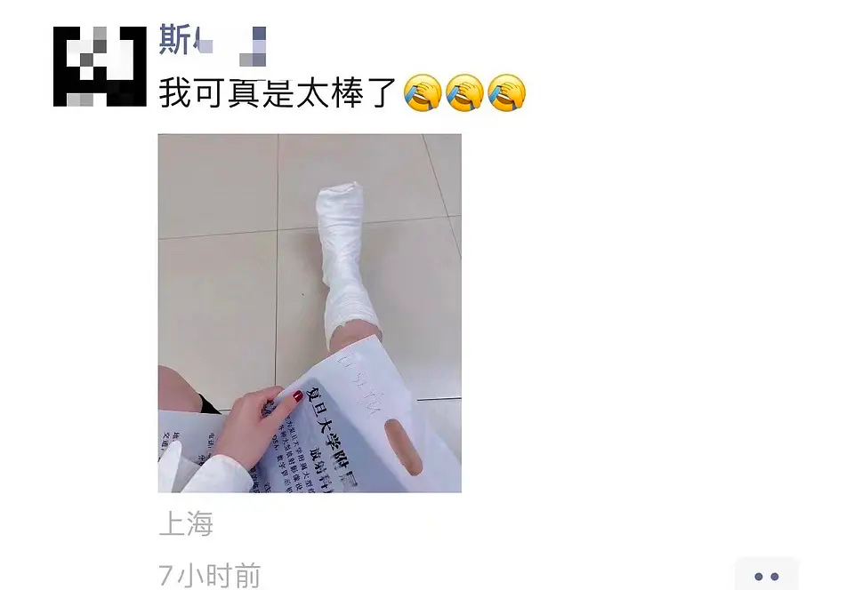 我还去看了一下李斯羽前两天发的微博,已经提到自己崴脚了。