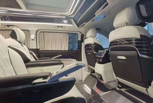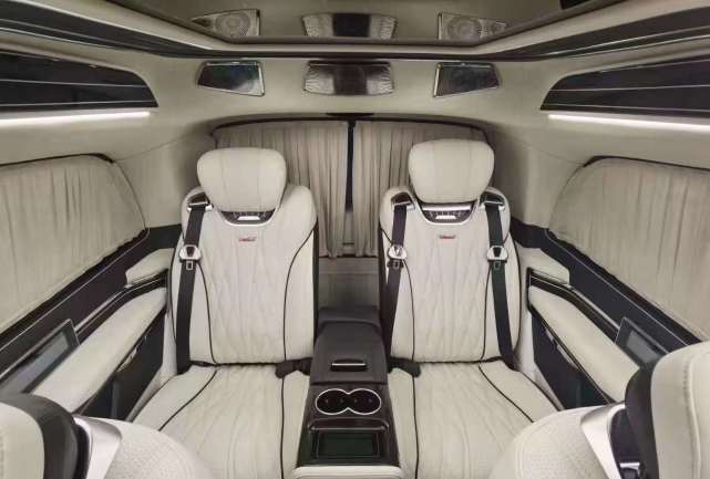 以往奔驰商务车带给大家的印象,就是老大哥一身黑出场的标准形象,而这款奔驰迈巴赫VS900L,虽然也是老大哥中的大哥大,不过却摆脱了以往老气死板的形象,蓝色车身涂漆车顶也彰显出了国际老友们的审美与品位,那就是奢华。