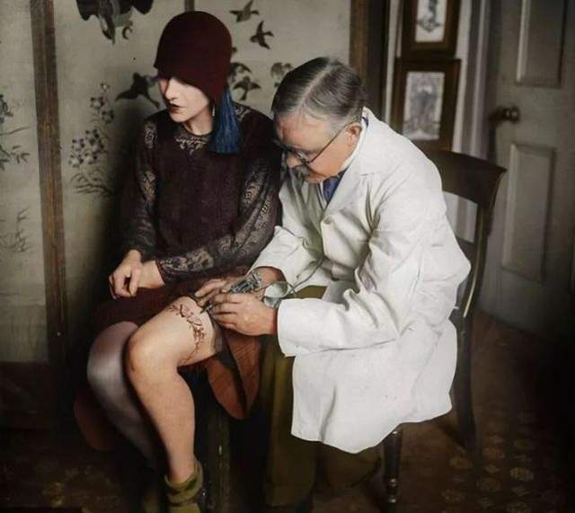 图为:1930年,英国一名纹身艺术家正在给一名女孩的腿上纹身。看来在30年代的时候,西方就已经开始流行纹身。