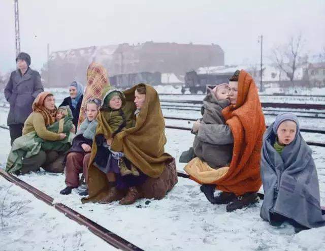 二战中,从波兰逃出的难民裹着毛毯,在铁道边等待,希望被英国军队的火车带走。