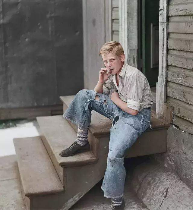 1938年7月,美国巴尔的摩,贫民窟里的男孩。