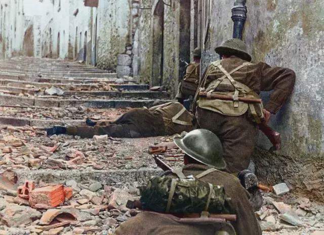 1943年,意大利奥托纳市,巷战中的加拿大士兵。