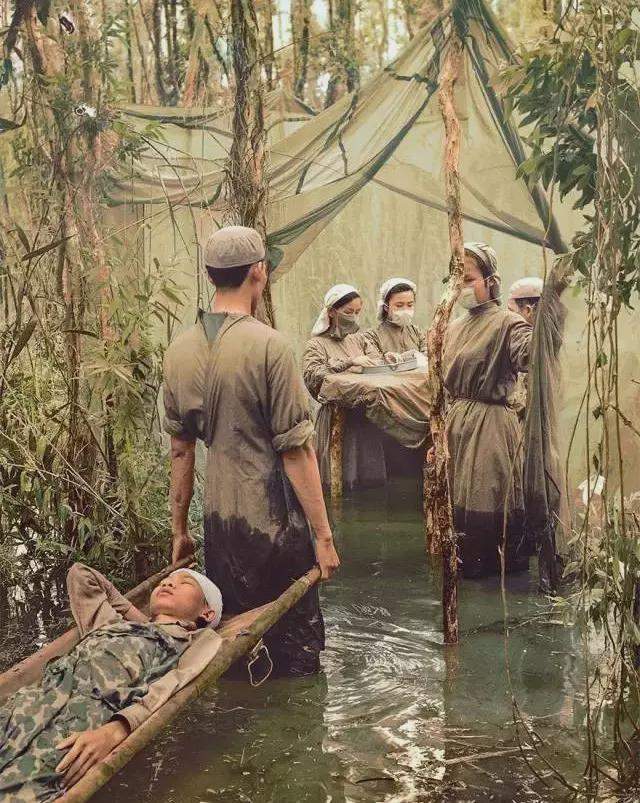 1970年9月15日,一位被美军飞机炸伤的柬埔寨游击队员,被抬到了救护所。