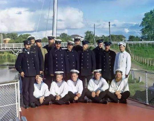 图为:1909年,俄国水手的合影,着装统一,留着典型的胡子。