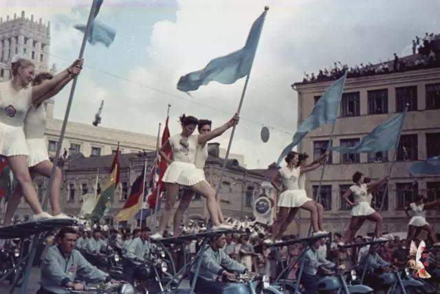 1957年,莫斯科,第6届“青年和学生的国际艺术节”场景。真实彩照。