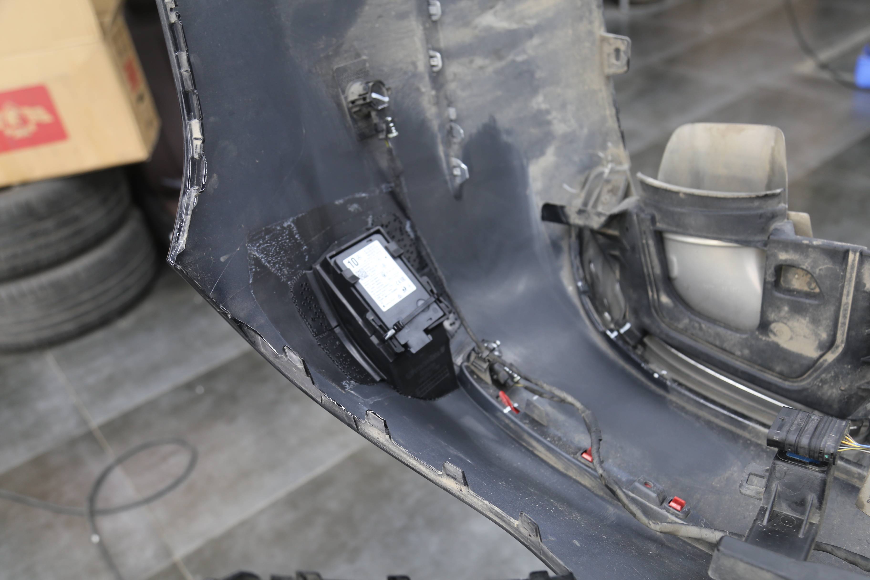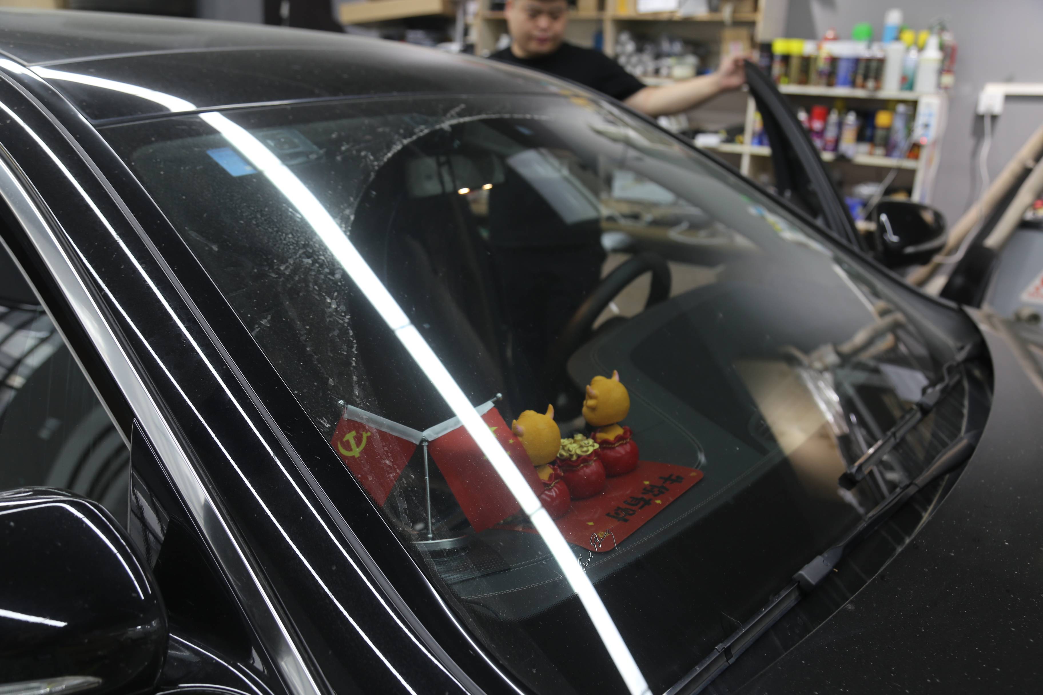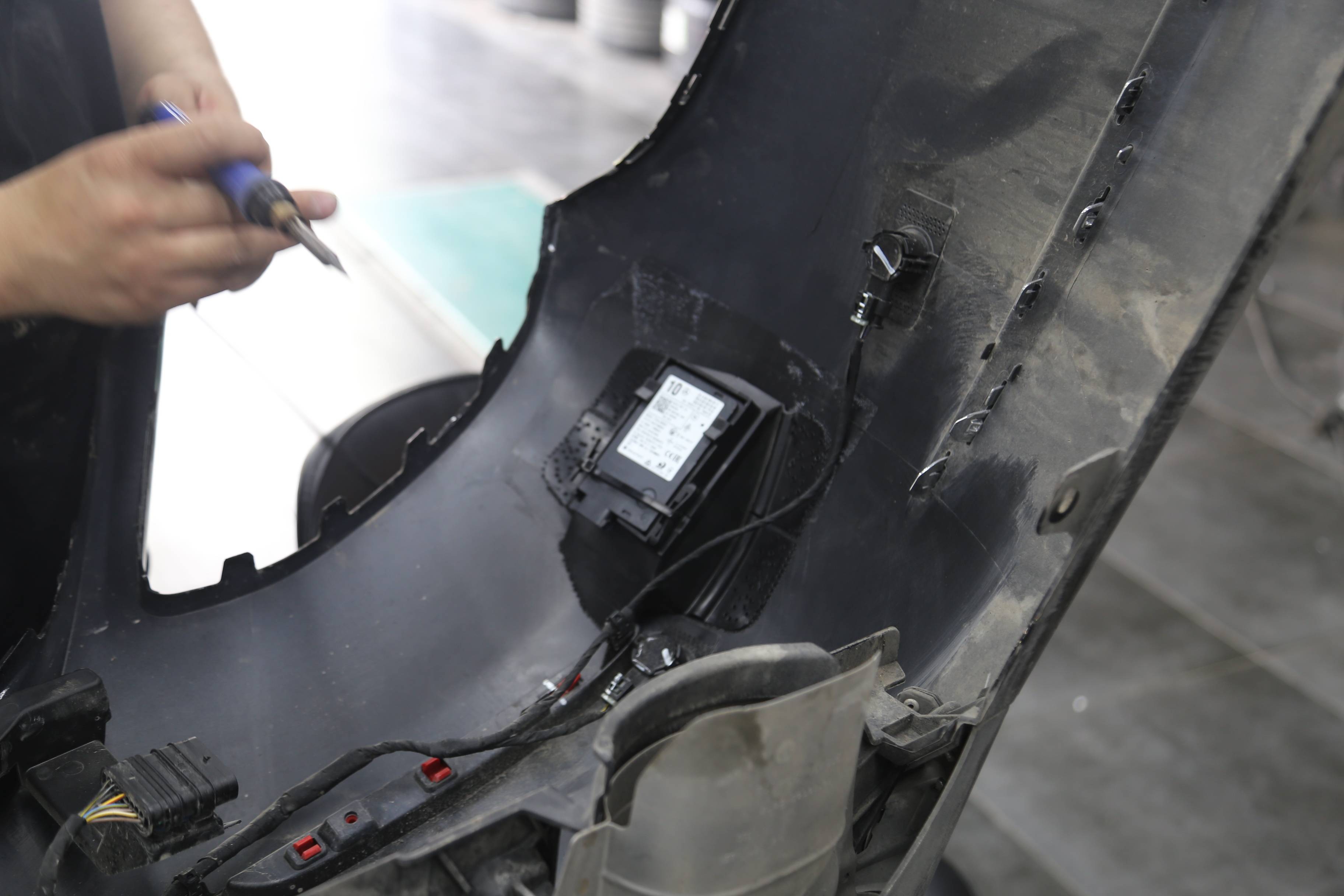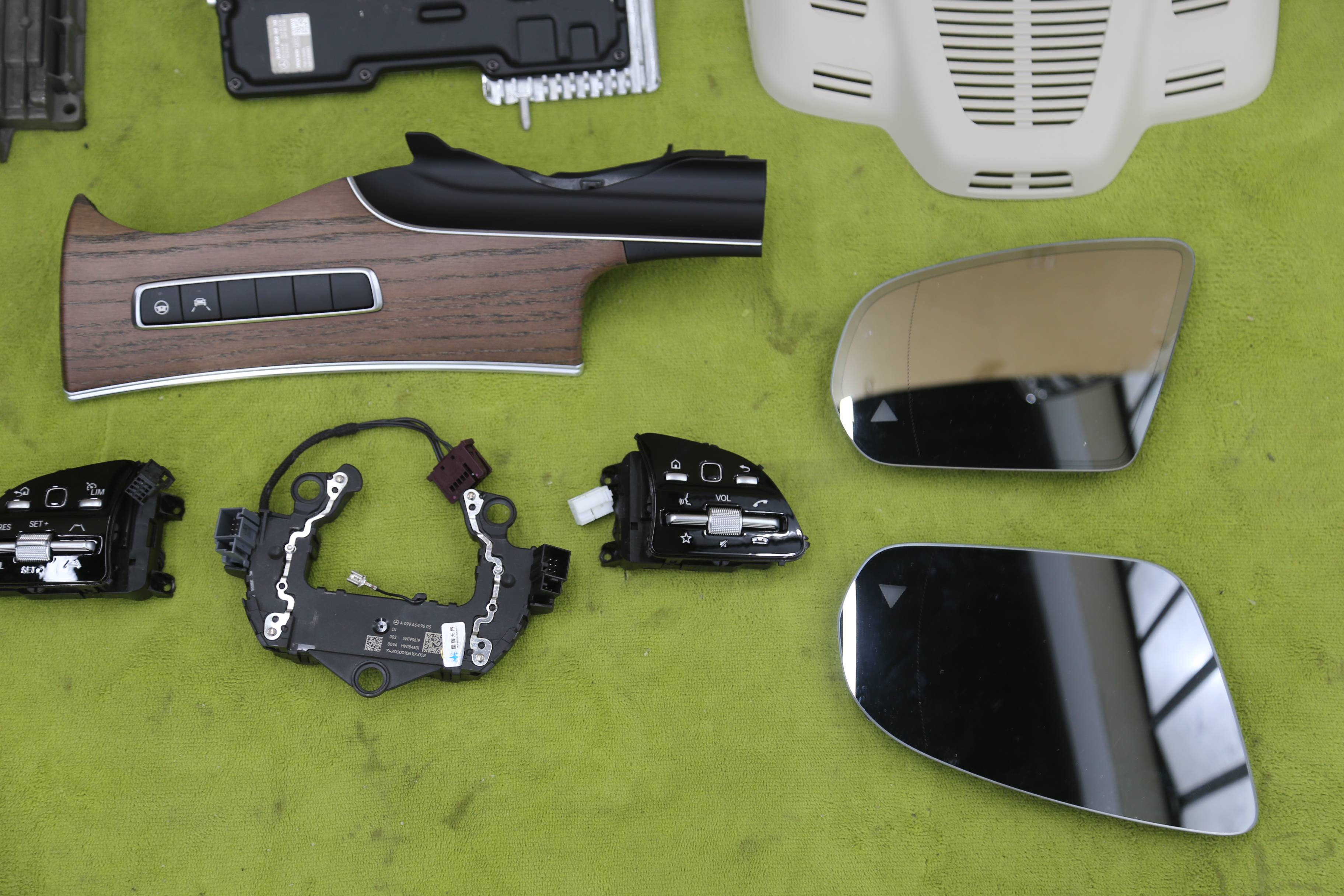 这个前挡风玻璃也是要换的,换成高配带双目摄像头的玻璃。方向盘上的按键以及方向盘旁边的饰板都要换。