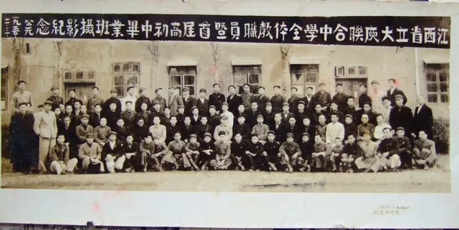 新中国成立后,1950年就有了毕业照,这张毕业照拍摄于江西省大余中学,照片中的人姿势各异,排列也没有正规毕业照那么整齐,男生们的装束也不局限于中山装。