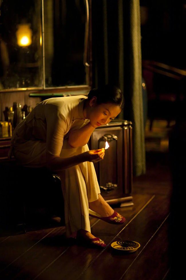 相信大家都看过《一代宗师》吧,其中有一幕的宋慧乔安静坐着,整个画面光影设计得很好,背景一点也不抢镜,氛围感十足。
