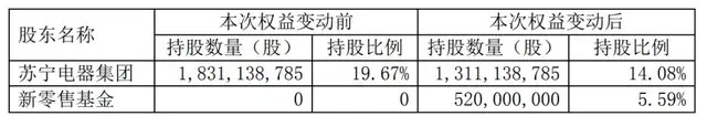 股权转让完成后,苏宁易购前五大股东变为淘宝(中国)软件有限公司、张近东及其一致行动人苏宁控股集团、鲲鹏资本、深圳国际和苏宁电器集团,持股比例分别为19.99%、16.38%、15%、8%和5.45%。