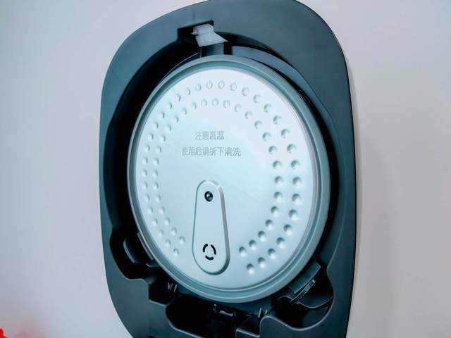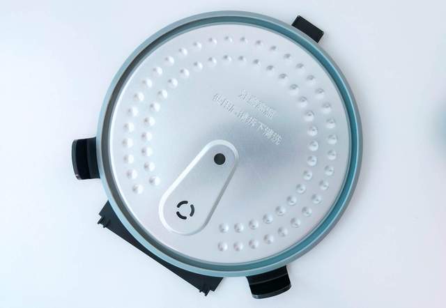 打开圈厨IH电饭煲之后,上盖内部的面盖为可拆卸设计,便于用户清洗。相信很多人会疑惑为何电饭煲的面盖基本都是凹点设计,其实这样的小设计可以避免蒸汽凝聚,不用担心冷凝水掉回锅中。