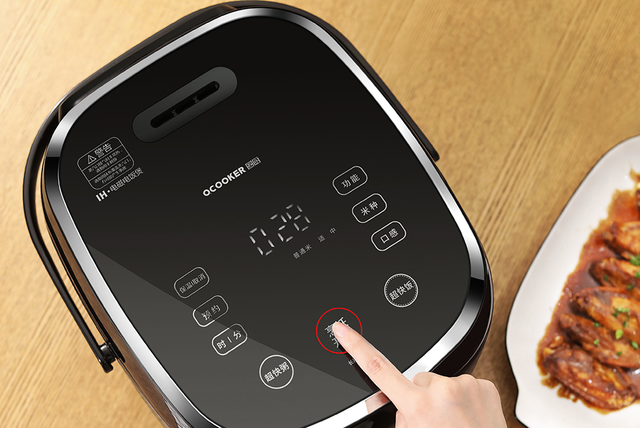 可以看到9颗按键均分布在四周,而按键中心位置便是一个LED屏幕,也是圈厨IH电饭煲的可视化区域,按键结合LED屏大大降低了用户的学习门槛,让老年人也能一学就会。
