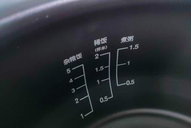 内胆内侧有各式各样的水位线,例如米饭、粥、粗粮等等,甚至米饭还区分了东北米、普通米、香米、丝苗米,细节设计周全。