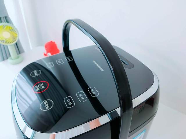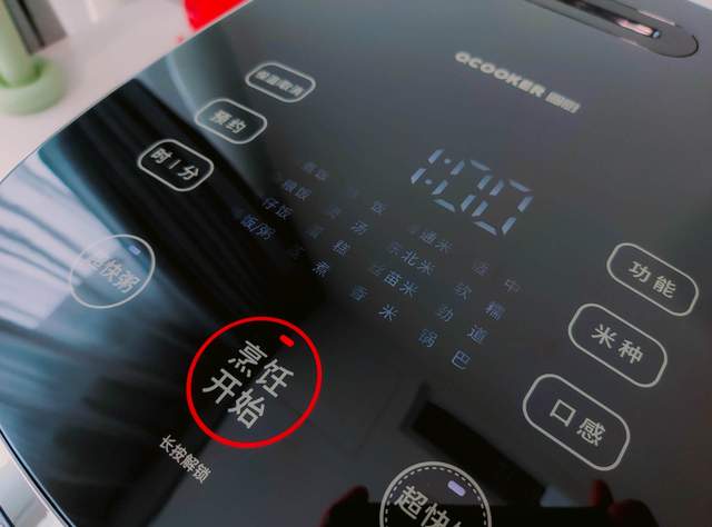 所有触控按键布局在电饭煲顶部,按键数量较多,一共有9个,不过对按键进行分区之后便能很好的理解。左侧是保温/取消、预约和时间调节按钮,右侧是功能、米种和口感,底部则是超快粥、超快饭以及烹饪开始按键。所有按键为IMD触控技术(模内注塑工艺),防水性能更好,更为耐用。