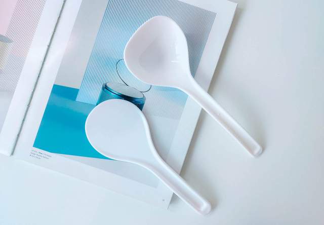 饭勺和汤勺手柄处均印有对应的材质名称,同时汤勺上标注了105℃耐高温标识。