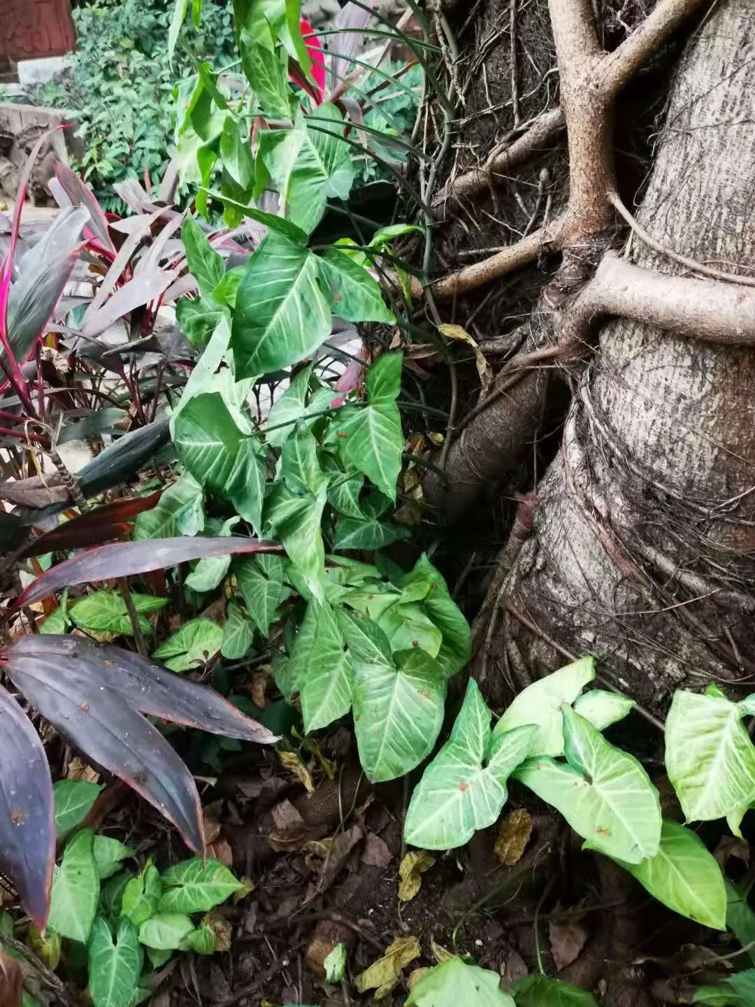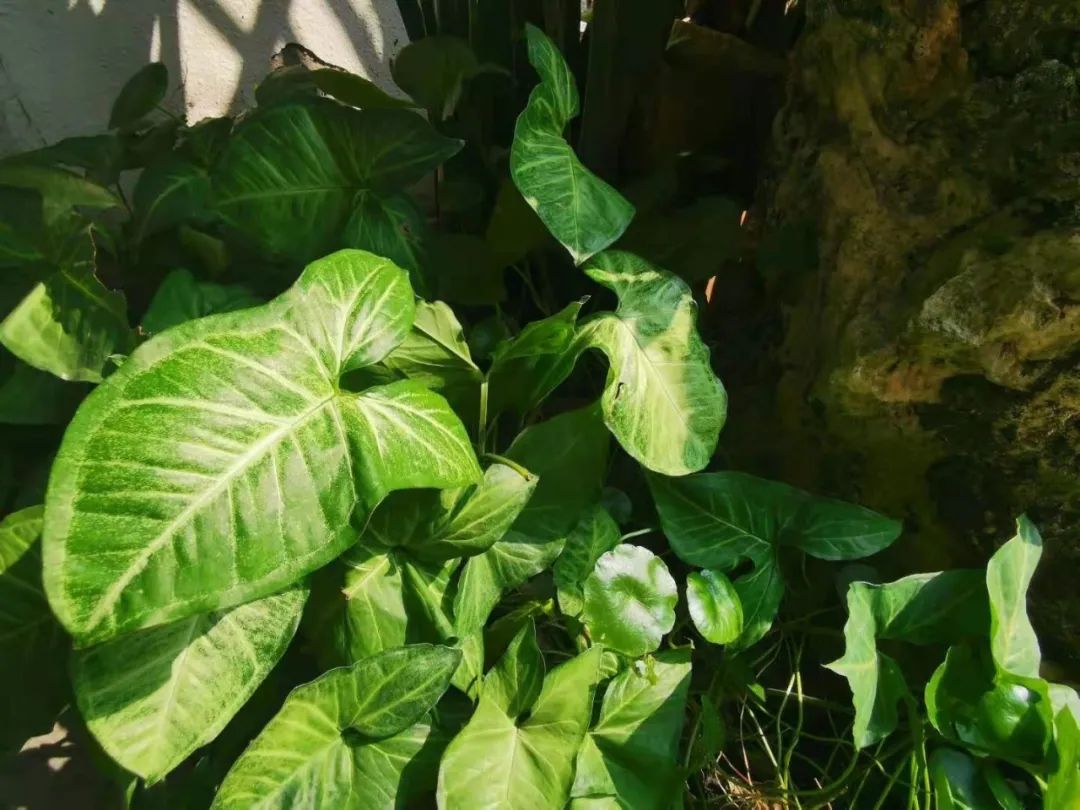 在南方的公园或植物园里,就经常可以看到合果芋,它通常会布置在一些阴凉的地方,就比如在树荫下,或者是在围墙的旁边。