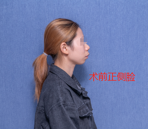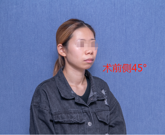 术前侧45°脸明显能看到下巴是后缩的。
