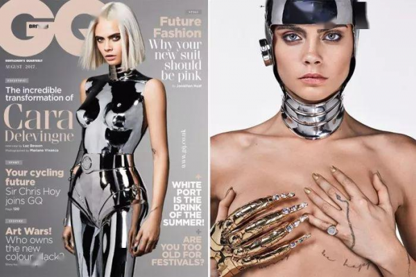 但是在空山基的脑子里面,硬邦邦的机器人拥有了曼妙的曲线,银色的皮肤似乎更加光滑、细腻。为追求超写实主义,他运用喷枪自然地绘画人体皮肤、嘴唇、头髮,以至每根毛发或皮革丝质布料,机械人的金属质感以及反光的细节。反正美,就对了。空山基专属的性感机器人——机械姬就这么横空出世了,大师的想法想法就是与常人不同。