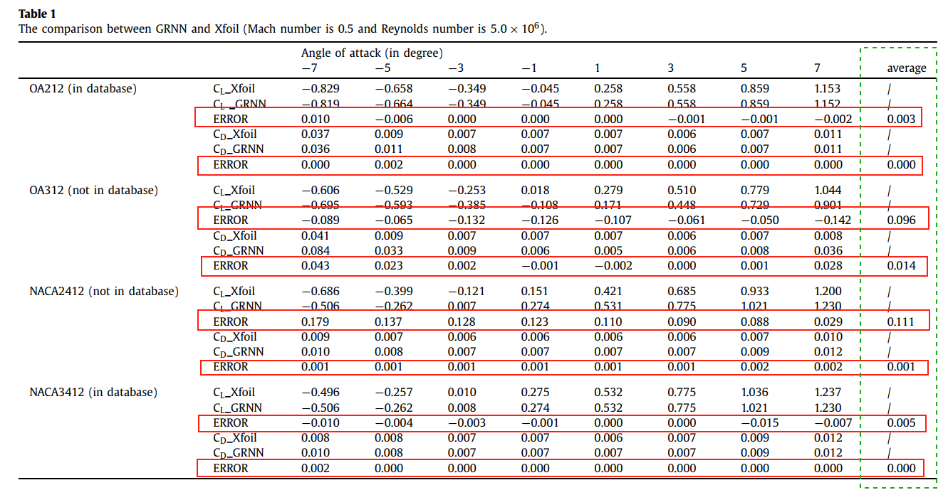 他用30多组包含有对称和非对称的直升机桨叶翼型(包含NACA系列,OA系列,SC系列、RAE系列和VR系列)建立了数据库,其气动力是通过Xfoil进行预先计算的,最后的计算结果如下图所示,从图中可以看出,这套模型的预测结果并不是非常优秀,但确实也提供了一个新的思路。