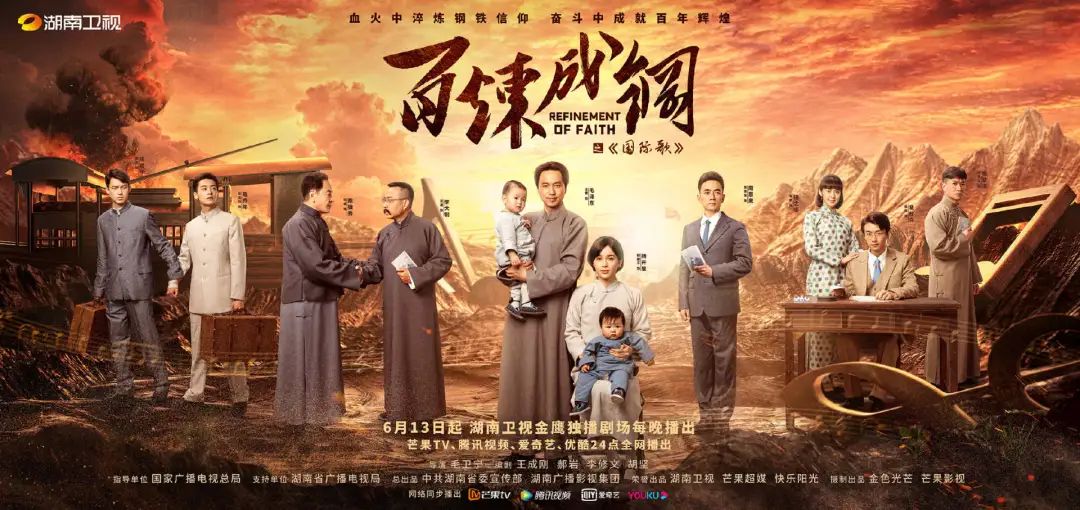 6月3日,电视剧《百炼成钢》官宣定档海报。该剧一共有八个单元,独家融入歌舞剧元素的“情境”段落,创新性 的 用八首经典红歌实现百年党史的完整串联,追溯了党的百年精神谱系与辉煌历程。