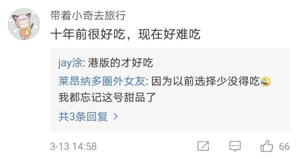 大众点评里,不少网友表示,“十年前很好吃,现在好难吃”、“以前是因为选择少没得吃,我都忘记这个品牌了。”