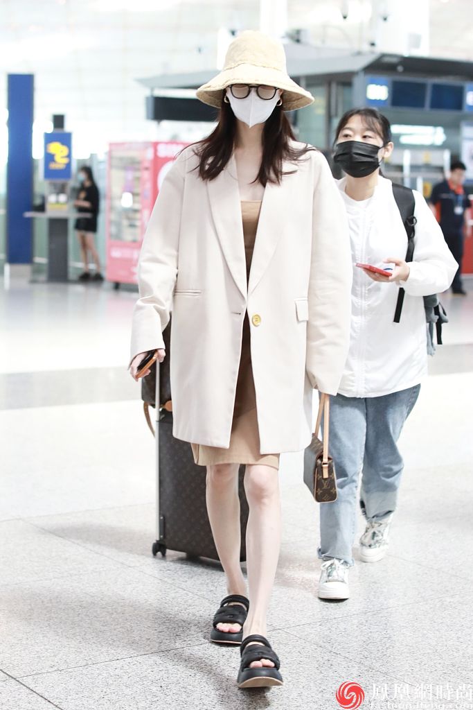 钟楚曦米色西装搭遮阳帽时髦混搭 厚底凉鞋大玩“非主流”