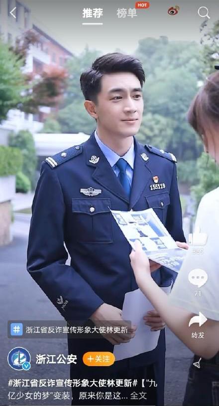 身为“浙江省反诈宣传形象大使”,林更新拍摄了一段视频,向人民群众普及反诈知识,穿警服的林更新简直太精神,太帅气了。