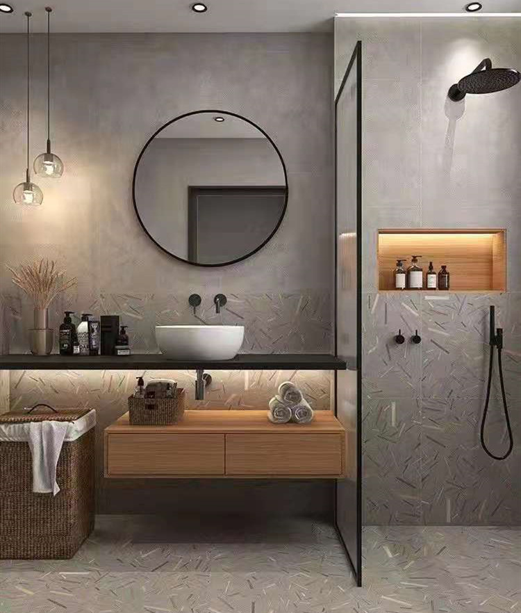 刚才这张图片大家不陌生吧,下墙1米2到1米3是瓷砖,而上边是防水乳胶漆,这样上边和下边就会有一个错层。