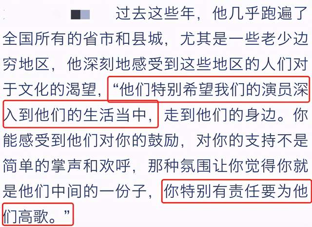 作为文艺工作者,姜昆自述过去这些年自己跑了很多地方,尤其是落后的偏远地区,那里的人们更渴望文化,每当走到他们身边时,自己就会受到环境的影响,有责任的对他们高歌。