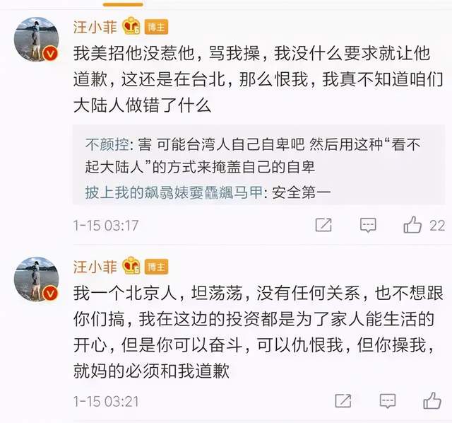 2020年,汪小菲在台湾和出租车司机吵架,司机爆粗口,他忍不下去发到了微博上。