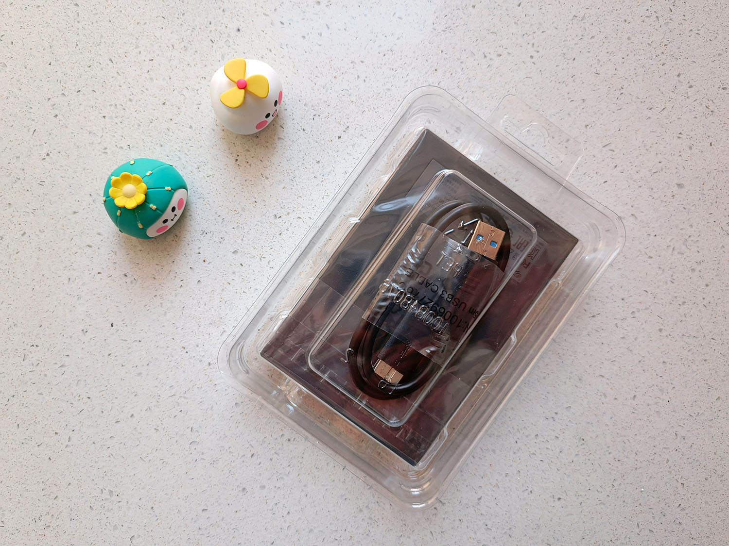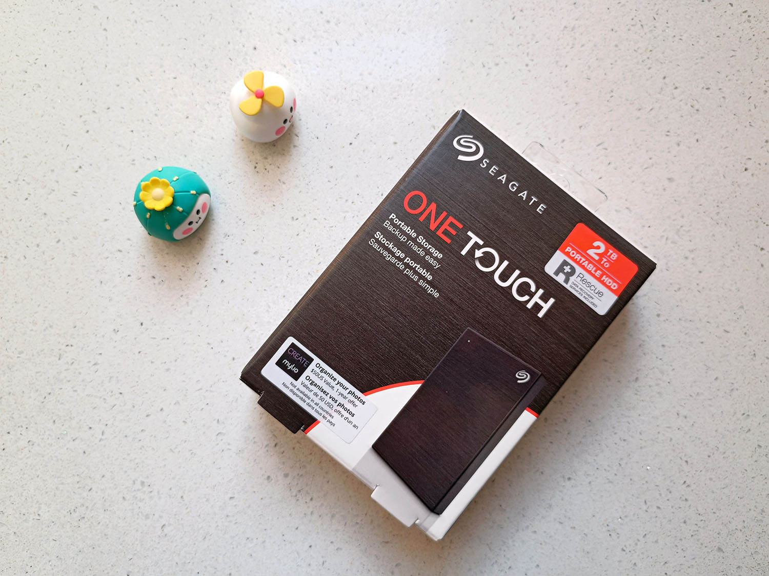 希捷铭系列2T移动硬盘采用黑白为主色调的包装,外观设计简洁大方,中间印有ONE TOUCH字样和硬盘的渲染图。这款移动硬盘提供了1TB、2TB、4TB、5TB多个版本容量选择,另外还可以根据自己的不同喜好选择颜色,比如女生可以选择红色,而不是单纯的黑色或者银色。