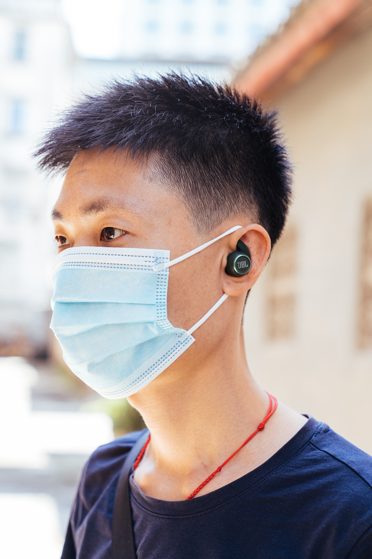 JBL REFLECT MINI NC太空舱带有羽翼式耳塞套,那么它的佩戴效果到底怎么样呢?使用中发现,佩戴牢固性做得真的很不错,我专门尝试快速左右晃动头部和慢跑,耳机都能牢固在耳廓中,没有出现飞出现象。耳机带有入耳侦测,当耳机取下时,会自动暂停音乐,佩戴上恢复,这样的智能化设计,可以很好的监测耳机佩戴情况。