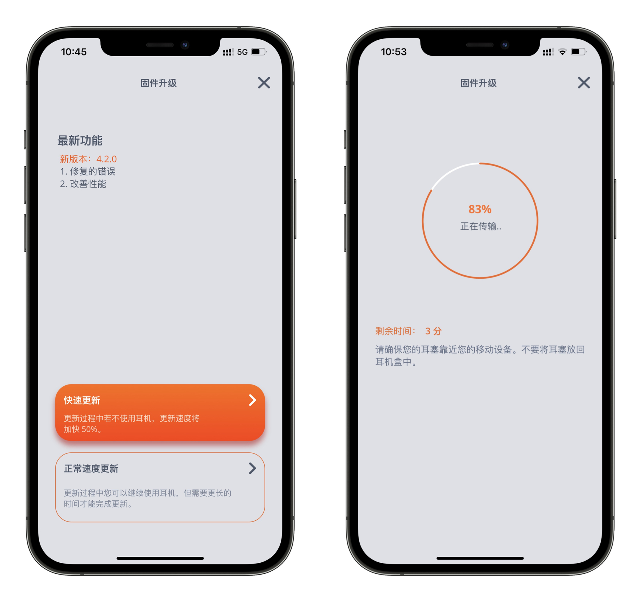 在APP中,还可以进行耳机固件的升级,这点是仅有高端耳机上才能看到的功能,通过OTA实现升级固件优化耳机。
