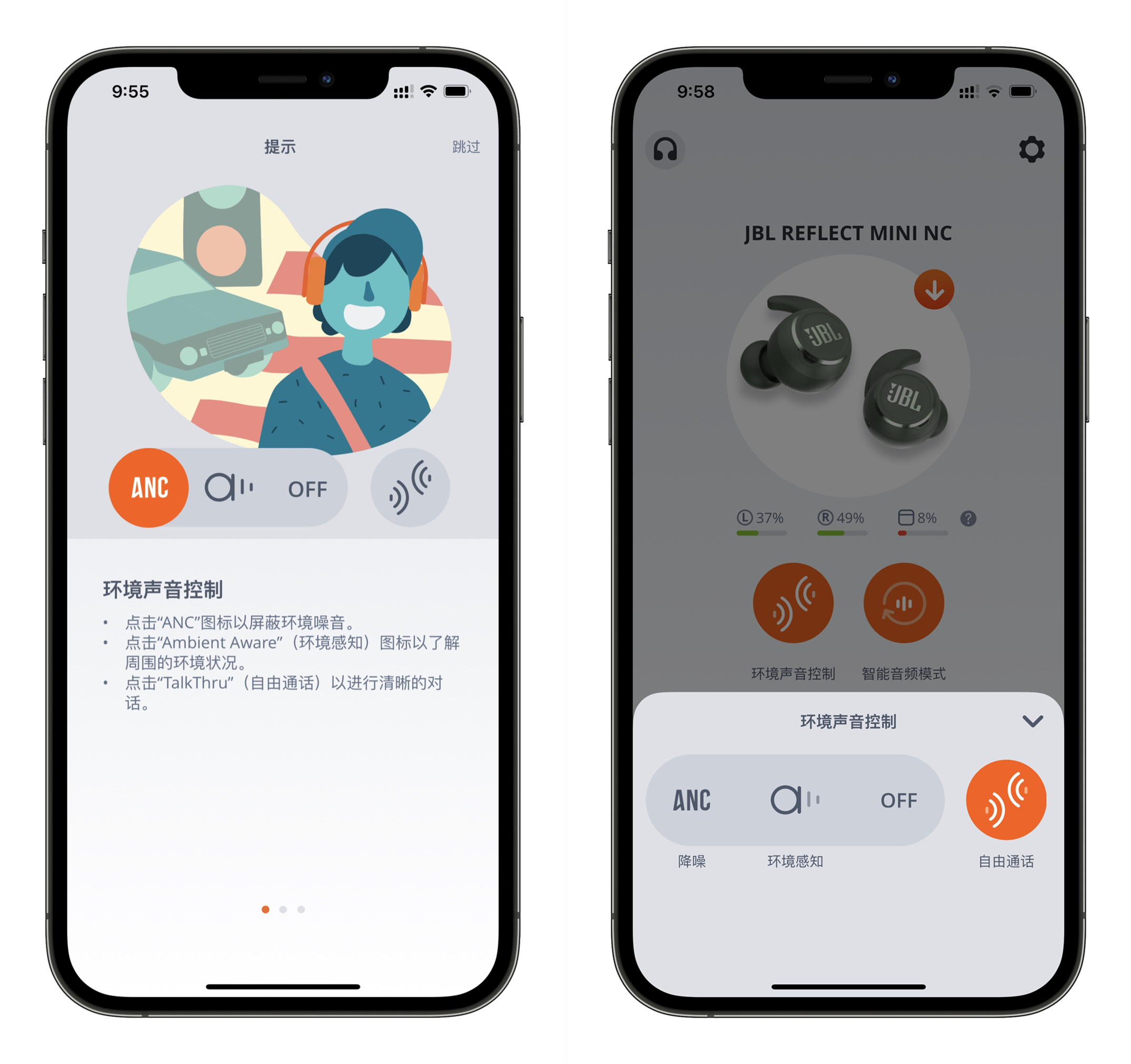JBL REFLECT MINI NC太空舱的自由度很高,可以个性化对默认的触控按钮功能进行重新配置,可以根据个人使用习惯设置。