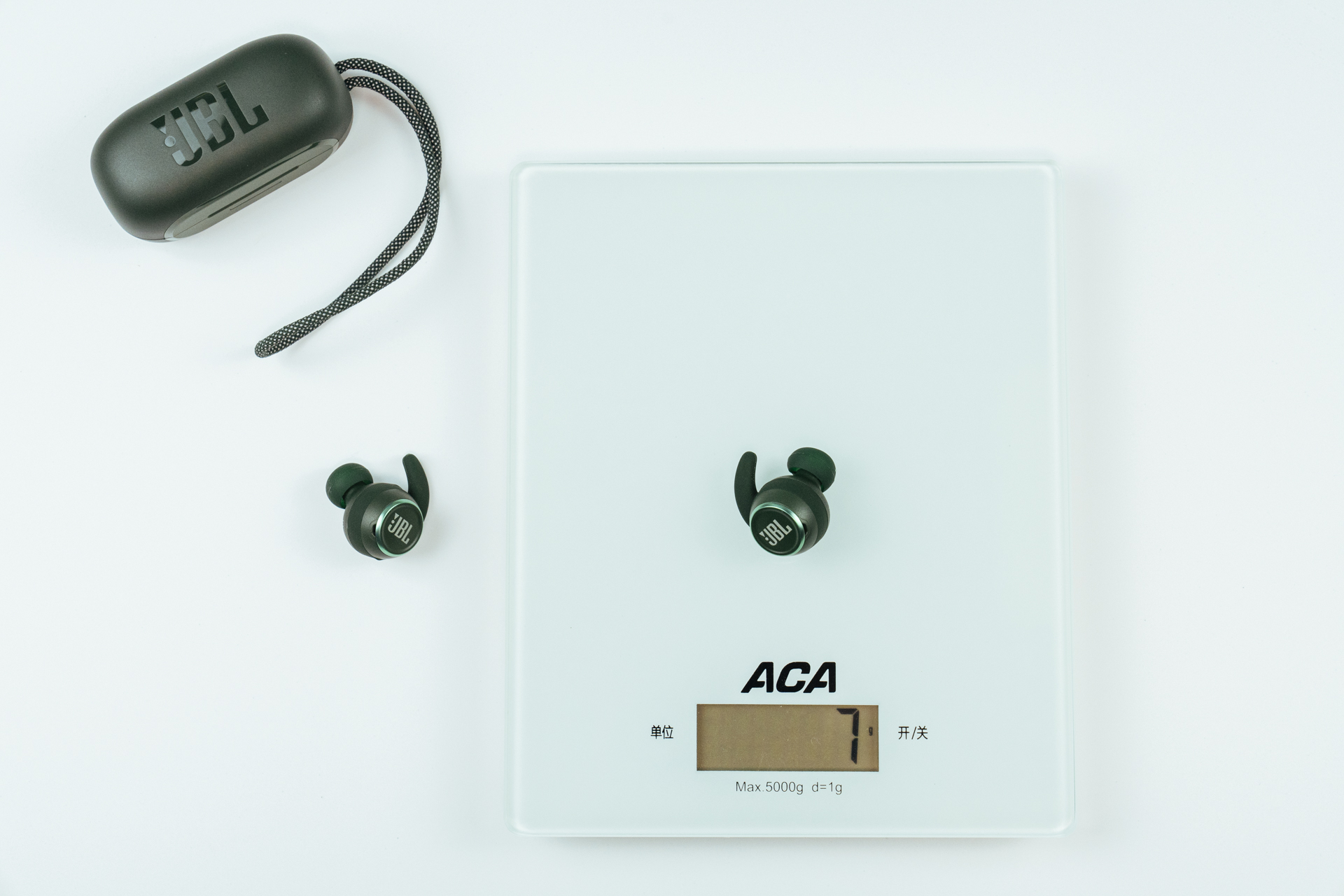 通过称重,可以看见JBL REFLECT MINI NC太空舱的充电仓盒和耳机的分别重量都是非常轻的,携带上不会有很大的负重感。耳机约6g的重量,佩戴起来也能减轻耳朵疲劳度。很多小伙伴在选择耳机的时候不要只关心性能参数这些,也要关注佩戴舒适度,因为轻量化的设计,可以让在运动中佩戴,都会感觉到耳朵的减负,不要让随身物品加重运动时的轻便需求。