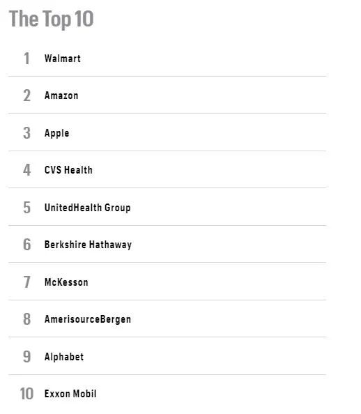 商业财富 | 2021年《财富》美国500强排行榜出炉。2021年进入榜单企业的营收门槛为54亿美元,比上一年下降5%。沃尔玛连续第九年在榜单上占据首位,在此期间累计创造了4.5万亿美元的收入。亚马逊营收增长38%保持第二。苹果公司成为今年榜单中最赚钱的公司,也是榜单上唯一市值超过2万亿美元的公司。位居第四的CVS Health成为该榜单有史以来由女性CEO领导的排名最前的公司。今年500强榜单中有41家是由女性CEO领导的企业,数量创历史新高。
