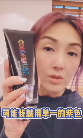 杨千嬅介绍了常用的染发膏,如果是搭配演唱会的造型,她把在紫色中混一些亮色的染发膏,是头发看起来比较亮眼。