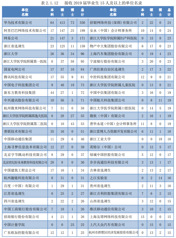 我们再实际从浙江大学发出的就业质量报告中的数据来看: