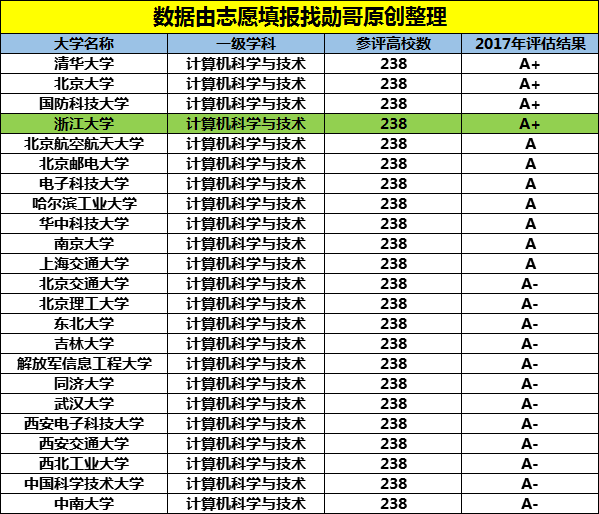 当然计算机专业比较好的学校远不止这4所,还有7所A级,12所A-级大学;