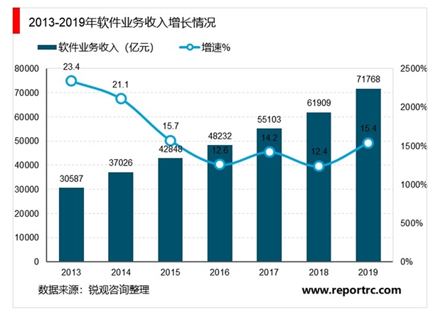 从2013年-2019年的软件业务收入增长情况来看,体量是比较大且持续增长的,但目前从事计算机工作的专业人员并不是非常多,对于这个专业的高端人才还是比较匮乏的。