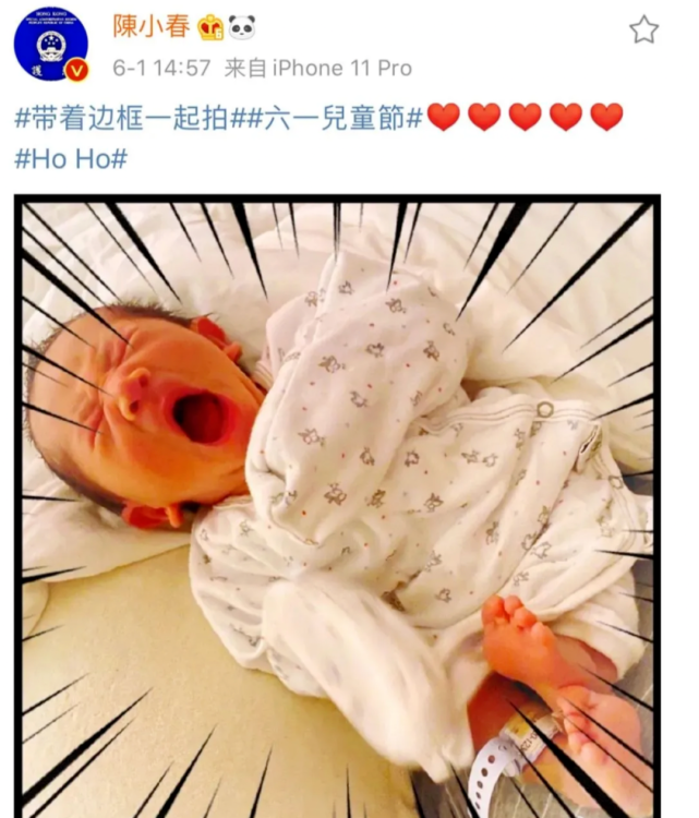 去年儿童节,陈小春微博晒出二胎儿子的照片,Jasper终于当哥哥了。