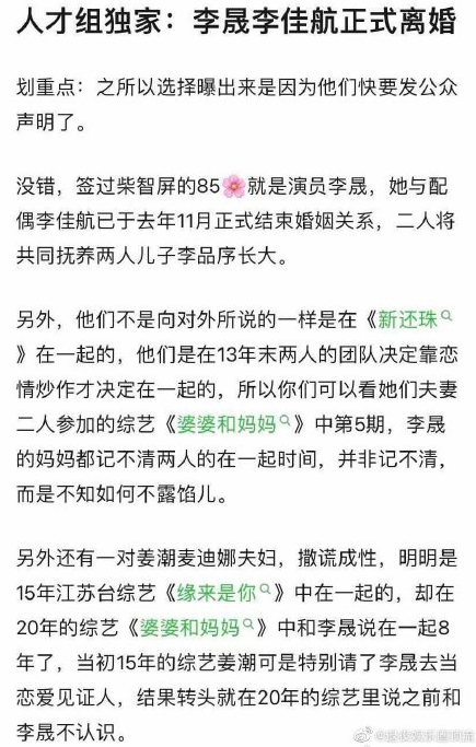 #李晟与李佳航离婚#