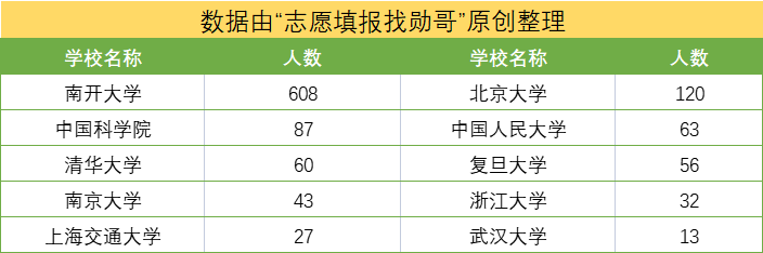 这是南开大学本科毕业生境内升学重点学校分布情况,从数据可看出,该校升学至北京大学的人数还是非常多的,超过百人。整体来看,学校的升学质量还是非常高的,升学至国内顶尖高校的本科毕业生很多。