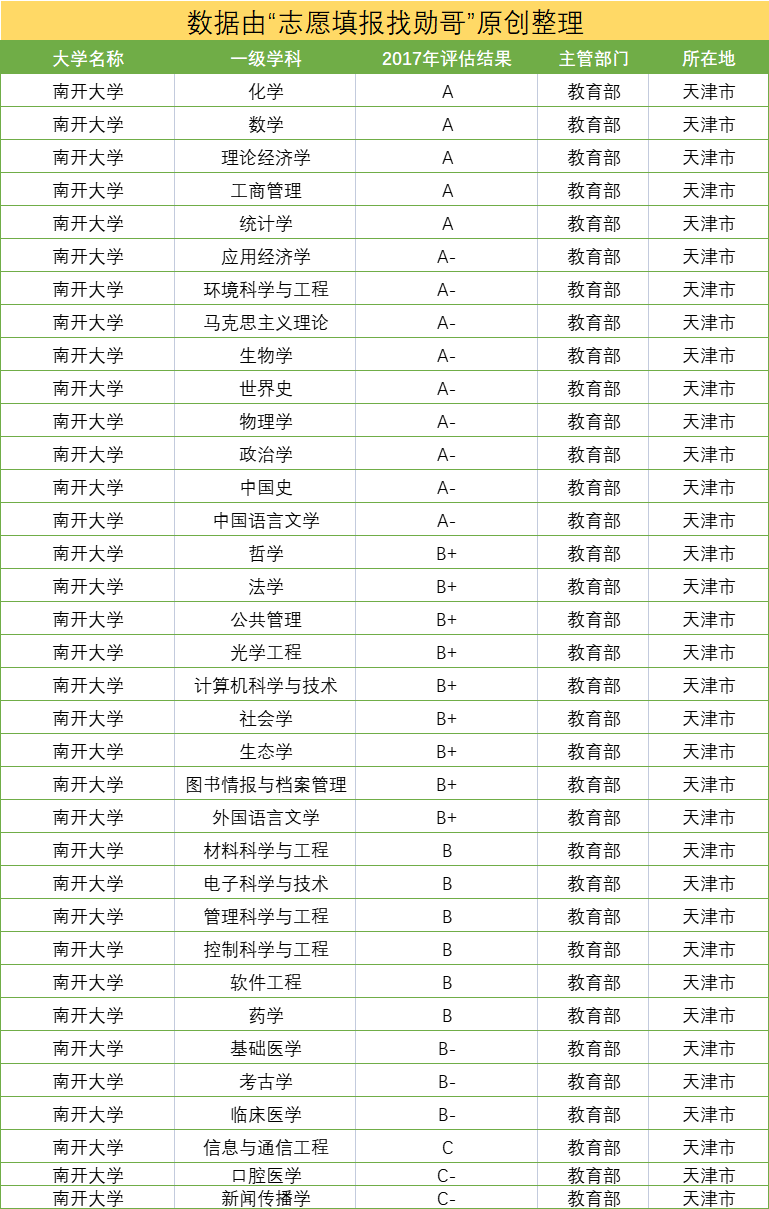 2、南开大学作为一所顶级高校,没有A+学科,即使其他学科再多,也难免有些尴尬。对于名校而言,优势专业的树立还是非常重要的,不知道在下一轮教育部的学科评估中,能不能获得一个A+学科。