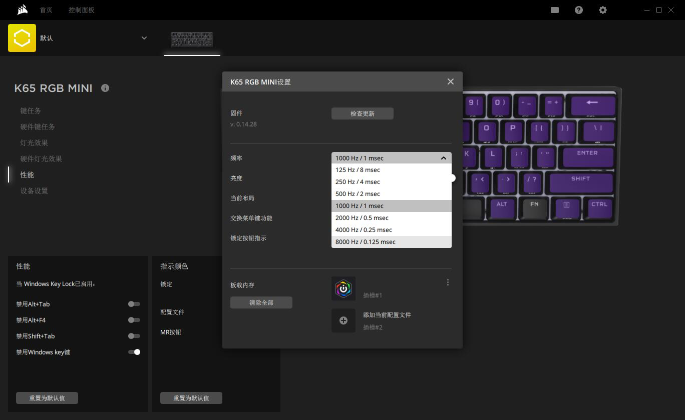 之前在 K100 上设置高回报率选项时,驱动会提醒用户高回报率对电脑性能的影响,如果不是追求极致的回报率或者电脑性能不允许,建议选择 2000Hz 或 4000Hz,如果有使用需求而且电脑性能允许的话再选择 8000Hz。