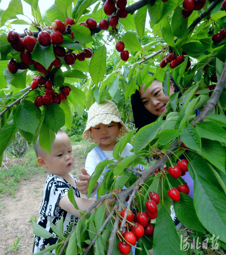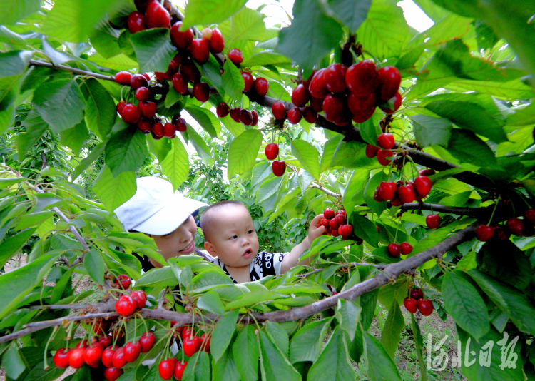 2021年6月2日,小朋友在位于河北省保定市徐水区巨力集团刘伶田园小镇采摘基地采摘樱桃。河北日报记者杜柏桦摄