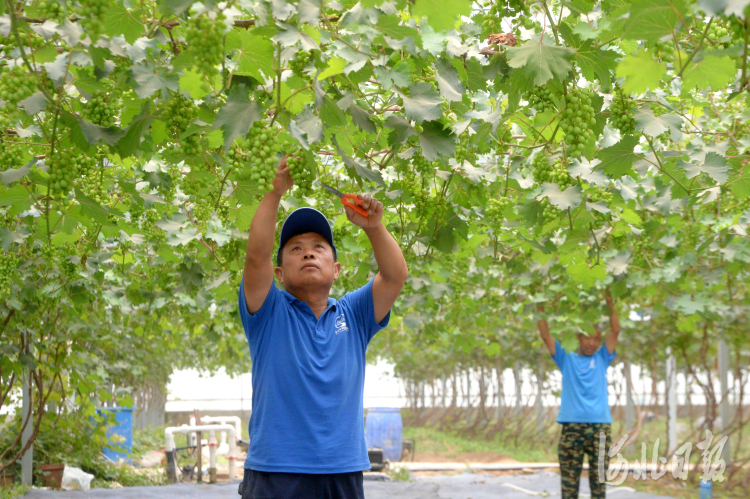 2021年6月2日,位于河北省保定市徐水区巨力集团刘伶田园小镇采摘基地员工管理葡萄。河北日报记者杜柏桦摄
